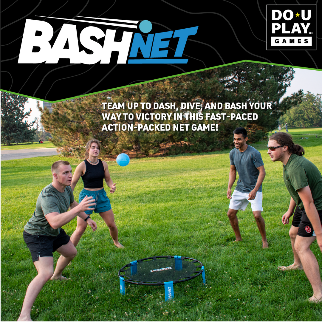 Bash-Net is a 2 vs 2 volleyball style game where each team has 3 hits to